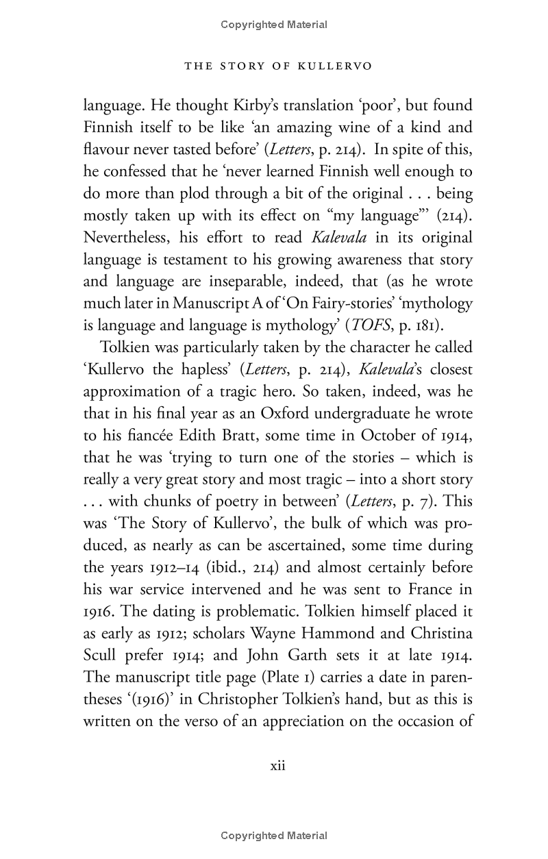Tolkien wrote that The Story of Kullervo was 'the germ of my attempt to write legends of my own', and was 'a major matter in the legends of the First Age'; his Kullervo was the ancestor of Turin Turambar, tragic incestuous hero of The Silmarillion. In addition to being a powerful story in its own right, The Story of Kullervo - published here for the first time with the author's drafts, notes and lecture-essays on its source-work, The Kalevala, is a foundation stone in the structure of Tolkien's invented world.
