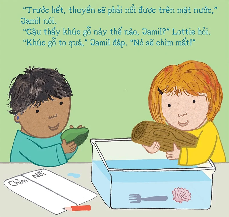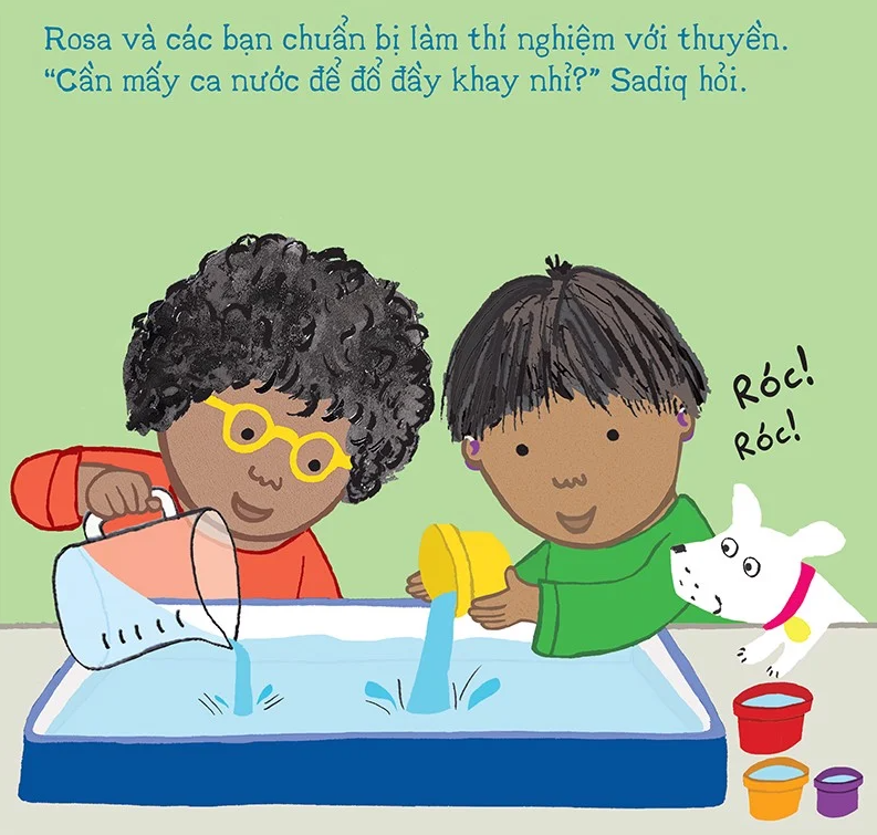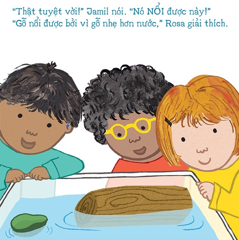 Rosa và các bạn đang cùng nhau tìm một vật liệu có thể nổi trên mặt nước để làm thuyền. Các bạn đã khám phá ra thật nhiều điều thú vị! Tại sao viên bi nhỏ hơn lại chìm xuống trong khi quả bóng bàn to hơn lại nổi lên mặt nước được nhỉ? Ta có thể dùng miếng bọt biển để chế tạo thuyền được không? Hãy cùng khám phá với Rosa nhé!