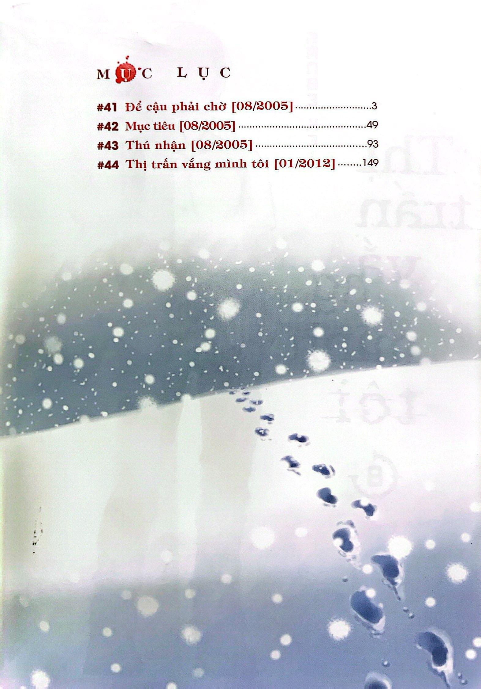 Mua tại TiktokGặp lại Airi, cánh cổng khóa chặt kí ức của Satoru đã được khai thông. Đồng thời điểm đó, tên hung thủ thật sự cũng đã biết tin anh tỉnh lại và đang gấp rút chuẩn bị một kế hoạch mới. Vụ án dài đằng đẵng 18 năm đầy gian nan và buồn thảm cuối cùng cũng tới hồi kết thúc. Mời các bạn đón đọc tập 8 của Thị trấn vắng mình tôi!