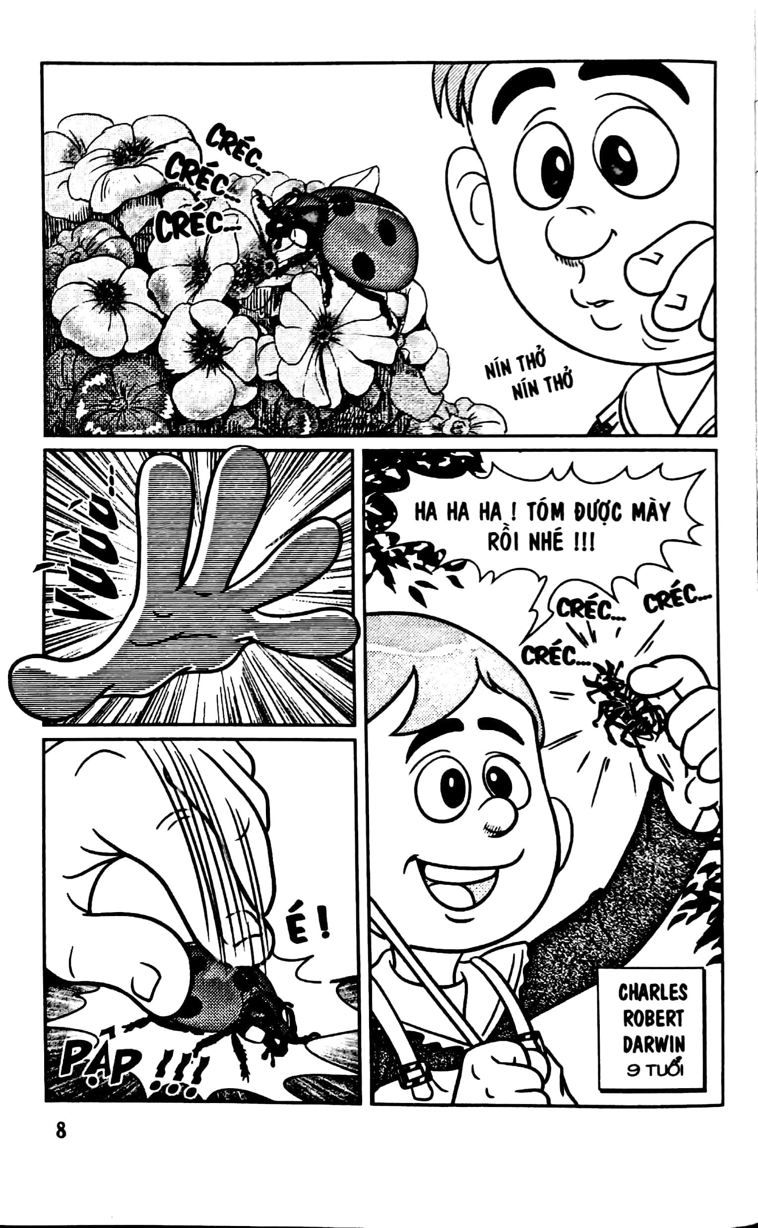 Thiên Tài Khoa Học Charles R. Darwin - amp; Thuyết Tiến Hóa Vĩ Đại Ngay từ thuở nhỏ, CHARLES R. DARWIN đã luôn say mê khám phá thế giới tự nhiên. Khi thì chạy nhảy khắp vườn, khi thì leo tít ngọn cây, niềm vui lớn nhất của Darwin lúc đó chính là thu thập tất tần tật mọi thứ, nào là côn trùng to nhỏ đủ loại, nào là đá sỏi đủ màu quý hiếm… Chính niềm đam mê mạnh mẽ này đã thôi thúc Darwin lên đường vượt đại dương bao la cùng chiếc tàu Beagle vào năm 1831. Suốt 5 năm trời, Darwin bôn ba thám hiểm khắp nơi, từ vùng đất Nam Mỹ hoang sơ đến quần đảo Galápagos kỳ bí, thu thập vô số tiêu bản động thực vật quý giá. Và cũng chính chuyến hải trình này đã giúp Darwin tìm được chiếc chìa khóa khai mở điều mà ông gọi là “bí ẩn của mọi bí ẩn”: nguồn gốc của muôn loài. Để rồi từ đó, Darwin phát triển nên một học thuyết làm chấn động cả thế giớ Thuyết tiến hóa. Với nét vẽ ngộ nghĩnh - sống động - hài hước, nội dung lôi cuốn bất ngờ, cùng vô số hình ảnh tư liệu phong phú, tập truyện tranh Charles R. Darwin & Thuyết tiến hóa vĩ đại thuộc bộ “Truyện tranh Khám phá – Thiên tài Khoa học” của công ty Phan Thị sẽ đưa bạn đồng hành cùng Darwin qua từng giai đoạn cuộc đời ông, từ thuở bé thơ đam mê côn trùng đến năm tháng cuối đời miệt mài nghiên cứu, để lại cho nhân loại những cống hiến vượt thời đại, trở thành một trong các thiên tài khoa học được vinh danh muôn đời .