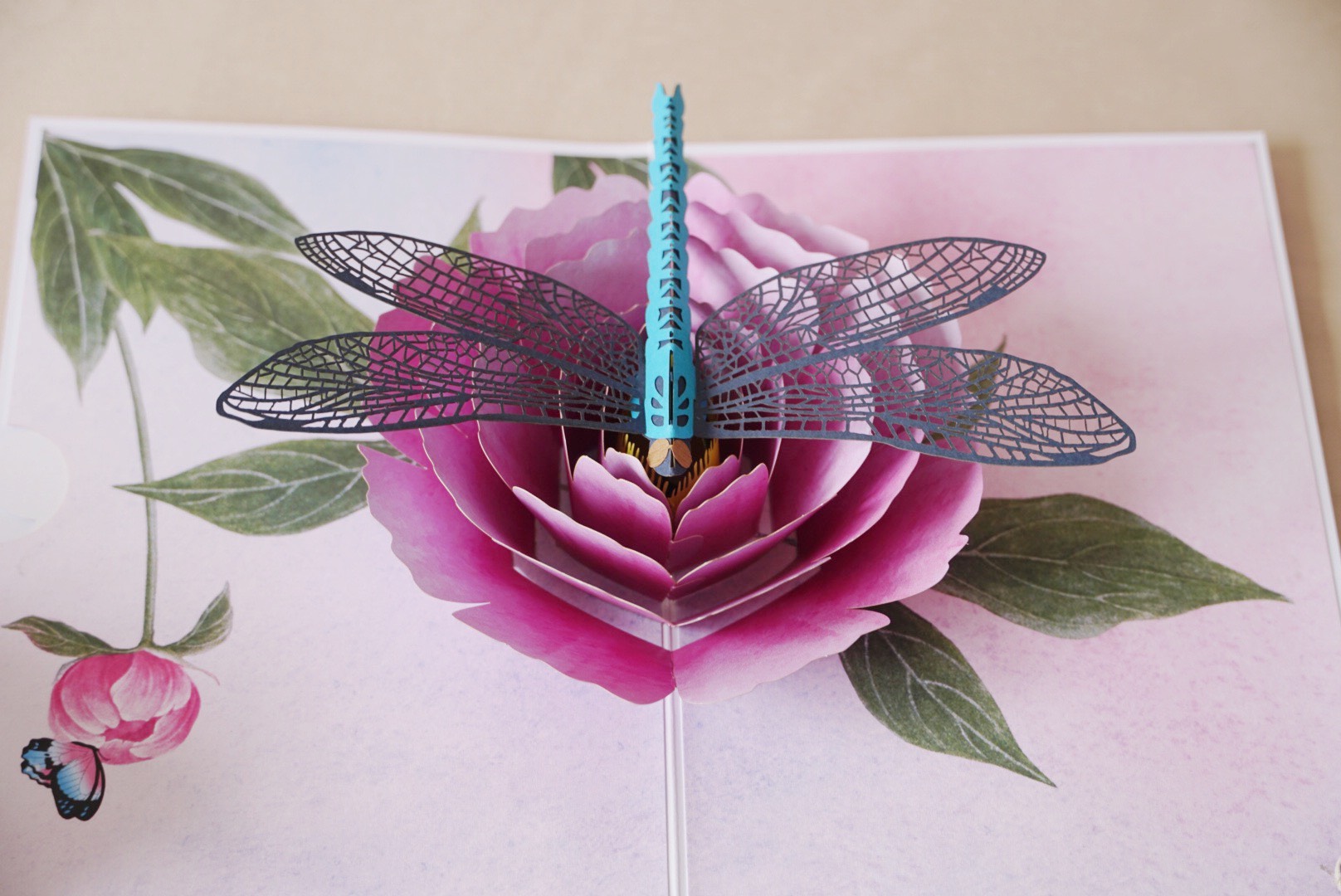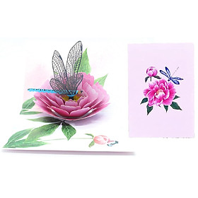 ✨Thiệp 3D Pop Up Chuồn Chuồn & Hoa Mẫu Đơn – Thiệp Hoa Nghệ Thuật, Thiệp Chúc Mừng, Sinh Nhật, F08