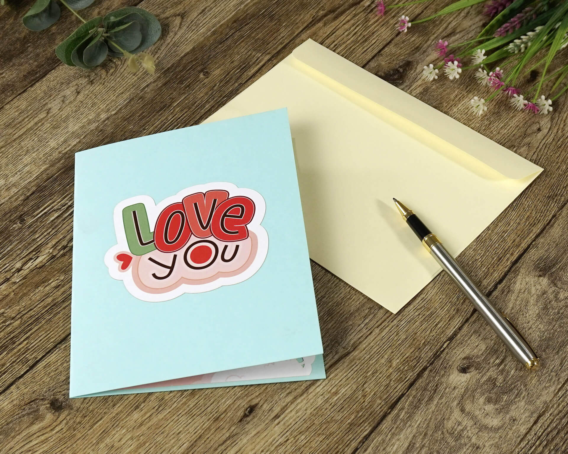 Thay lời muốn nói bằng thiệp 3D Pop Up xe máy tình yêu độc đáo. Khi mở ra, hình ảnh chiếc xe máy xanh bật nổi, chở đầy hoa hồng đỏ, bóng bay trái tim và hộp quà xinh xắn kèm dòng chữ “I Love You” hiện lên sống động.