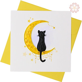 ✨Thiệp giấy xoắn nghệ thuật - chú mèo cưỡi trăng - size 15x15cm