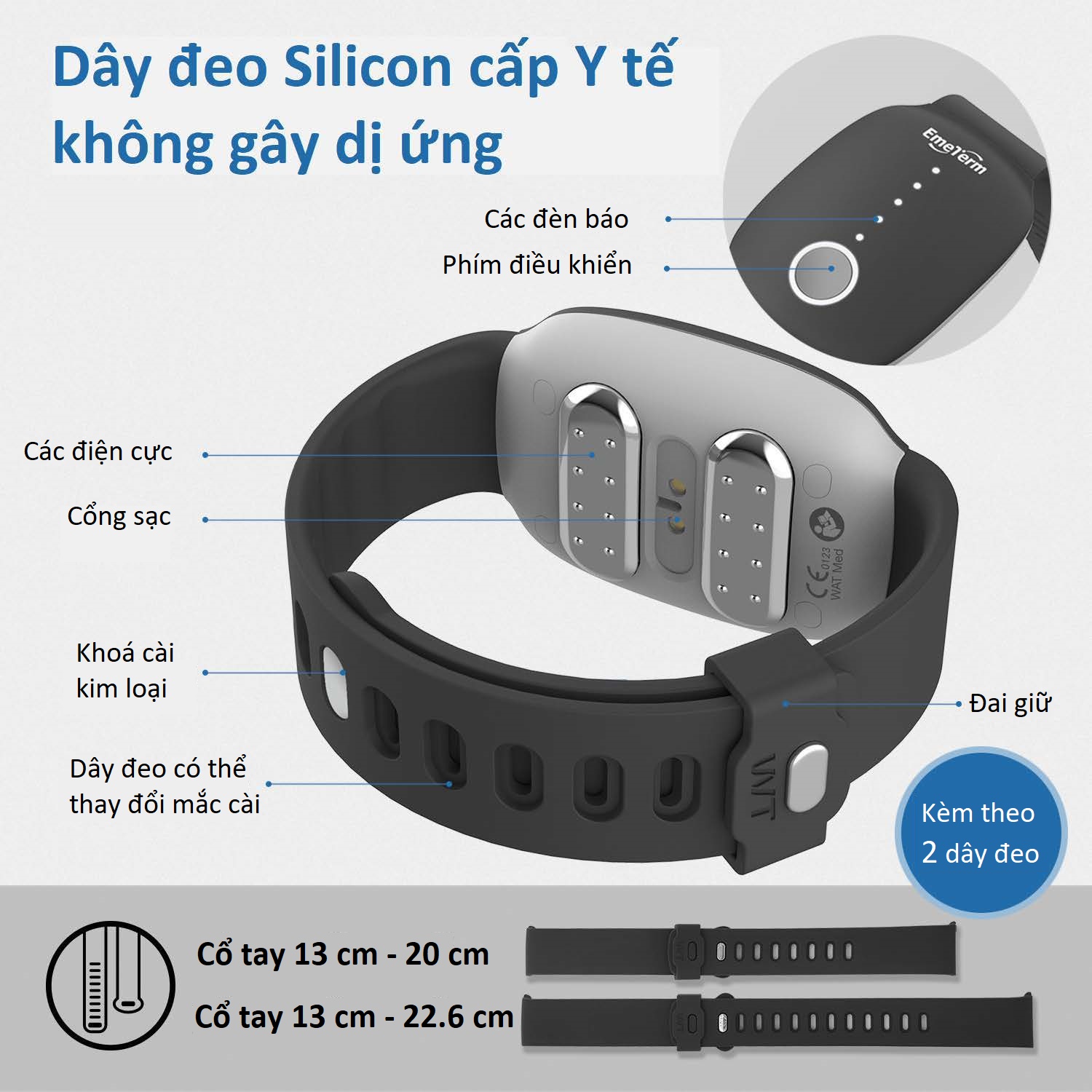 MÔ TẢ SẢN PHẨM EmeTerm Explore là thiết bị đeo tay sử dụng công nghệ TENS (dùng các xung điện nhỏ và chính xác để kích thích điện thần kinh không xâm lấn, bao