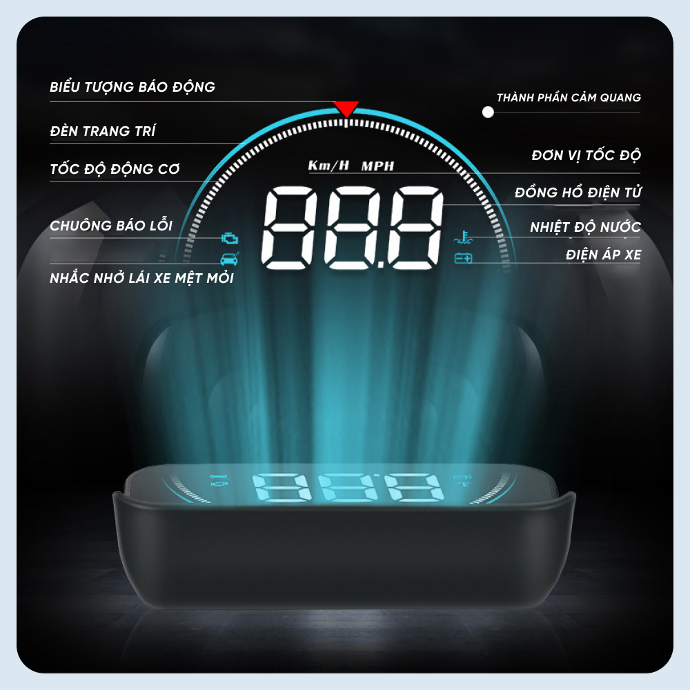 Thiết bị hiển thị và cảnh báo tốc độ hắt kính lái xe ô tô Hud M8 - OBD 2, dùng được cho đa phần các loại xe Thiết bị hiển thị và cảnh báo
