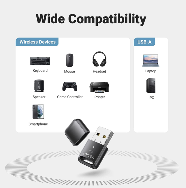 Thông số kỹ thuật: Thiết bị USB Bluetooth 5.3 Dongle cho PC chính hãng Ugreen 90225 cao cấp - Hãng sx: Ugreen - Mã sp: 90225 - Tính năng: USB Bluetooth dùng cho PC, Laptop -