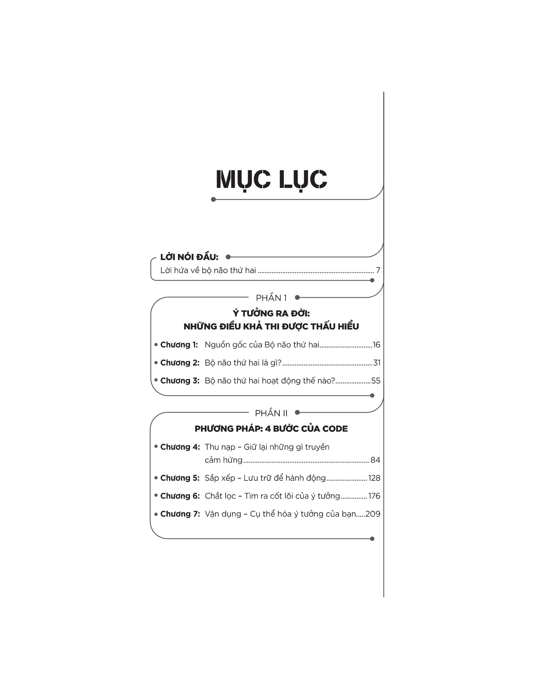 Cuốn sách Buiding a Second Brain - Thiết lập bộ não thứ hai làmột cách tiếp cận mang tính cách mạng, một bản hướng dẫn, chỉ ra các phương pháp để bạn có thể dễ dàng tạo hệ thống dữ liệu công việc cá nhân để quản lý kiến thức. Hệ thống này chính là kho lưu trữ kỹ thuật số có tổ chức và đáng tin cậy, chứa các ý tưởng, ghi chú sáng tạo có giá trị nhất, được đồng bộ hóa trên tất cả các thiết bị và nền tảng của bạn. Bộ não thứ hai mang đến cho bạn sự tự tin để giải quyết các dự án quan trọng nhất và các mục tiêu đầy tham vọng của mình.
