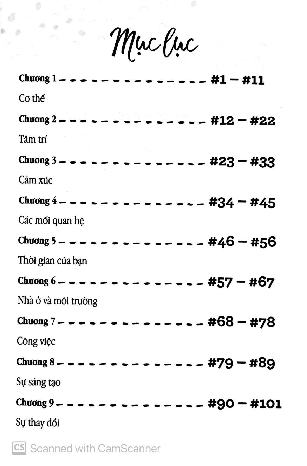 Nếu bạn không rõ phải bắt đầu từ đâu thì theo tôi, ba chương đầu tiên (Cơ thể, Tâm trí và Cảm xúc) là ba chương “căn bản” giúp bạn có được nền tảng vững chắc để thực hành chăm sóc bản thân.