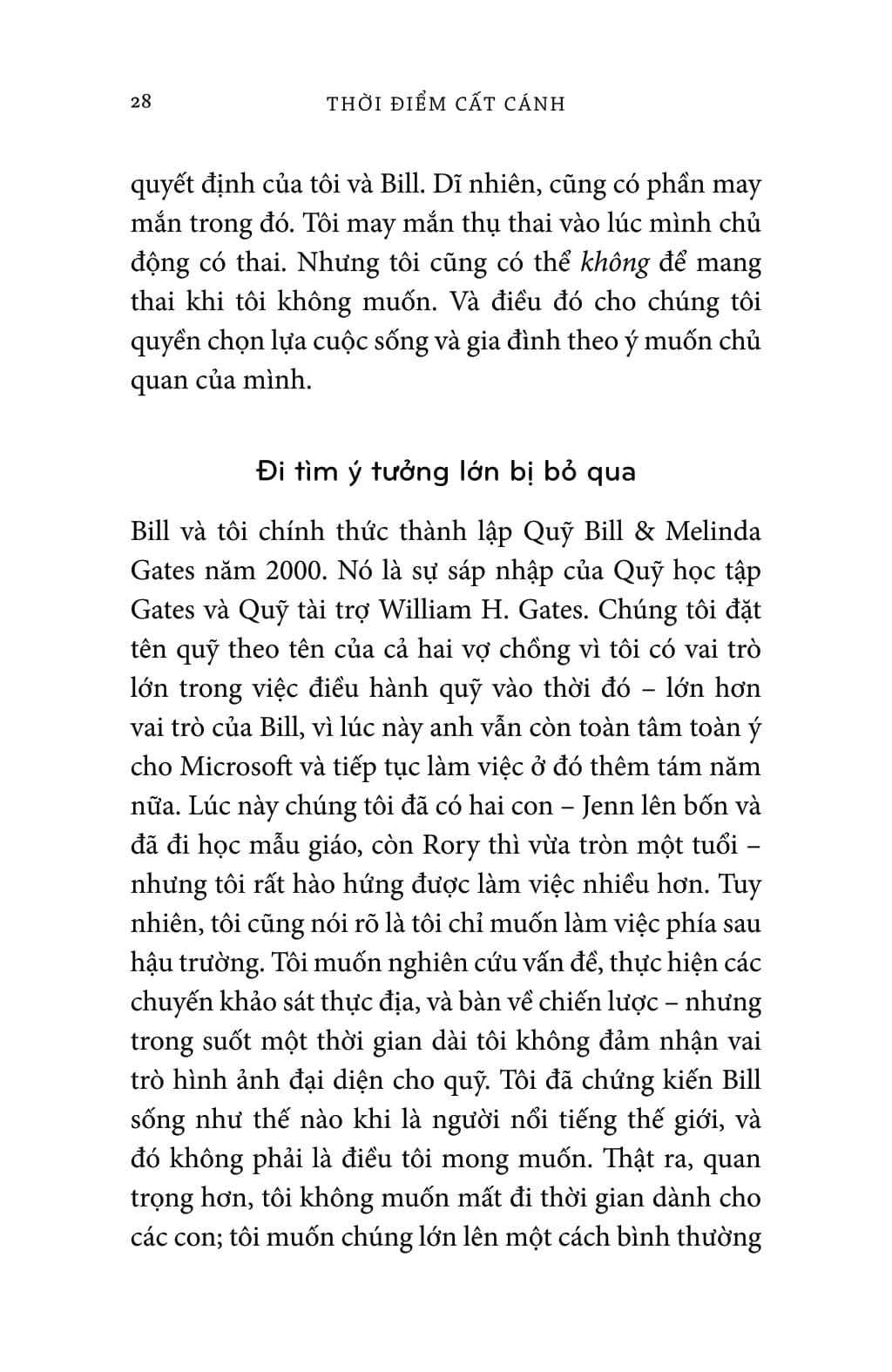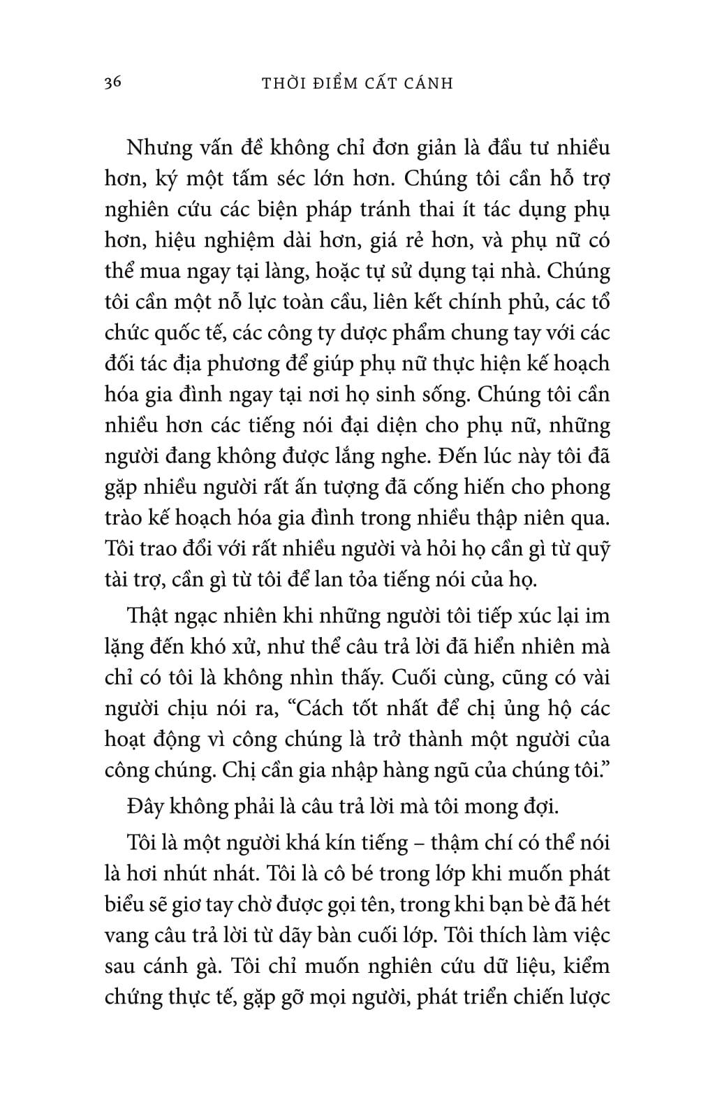 Câu chuyện khó quên của Melinda được hỗ trợ bởi những dữ liệu đáng kinh ngạc khi bà trình bày những vấn đề mà chúng ta cần phải quan tâm - từ tảo hôn, đến sự thiếu tiếp cận với các biện pháp tránh thai cho đến bất bình đẳng giới tại nơi làm việc. Và, lần đầu tiên bà viết về cuộc sống cá nhân và con đường dẫn đến bình đẳng trong hôn nhân của chính m.ình.