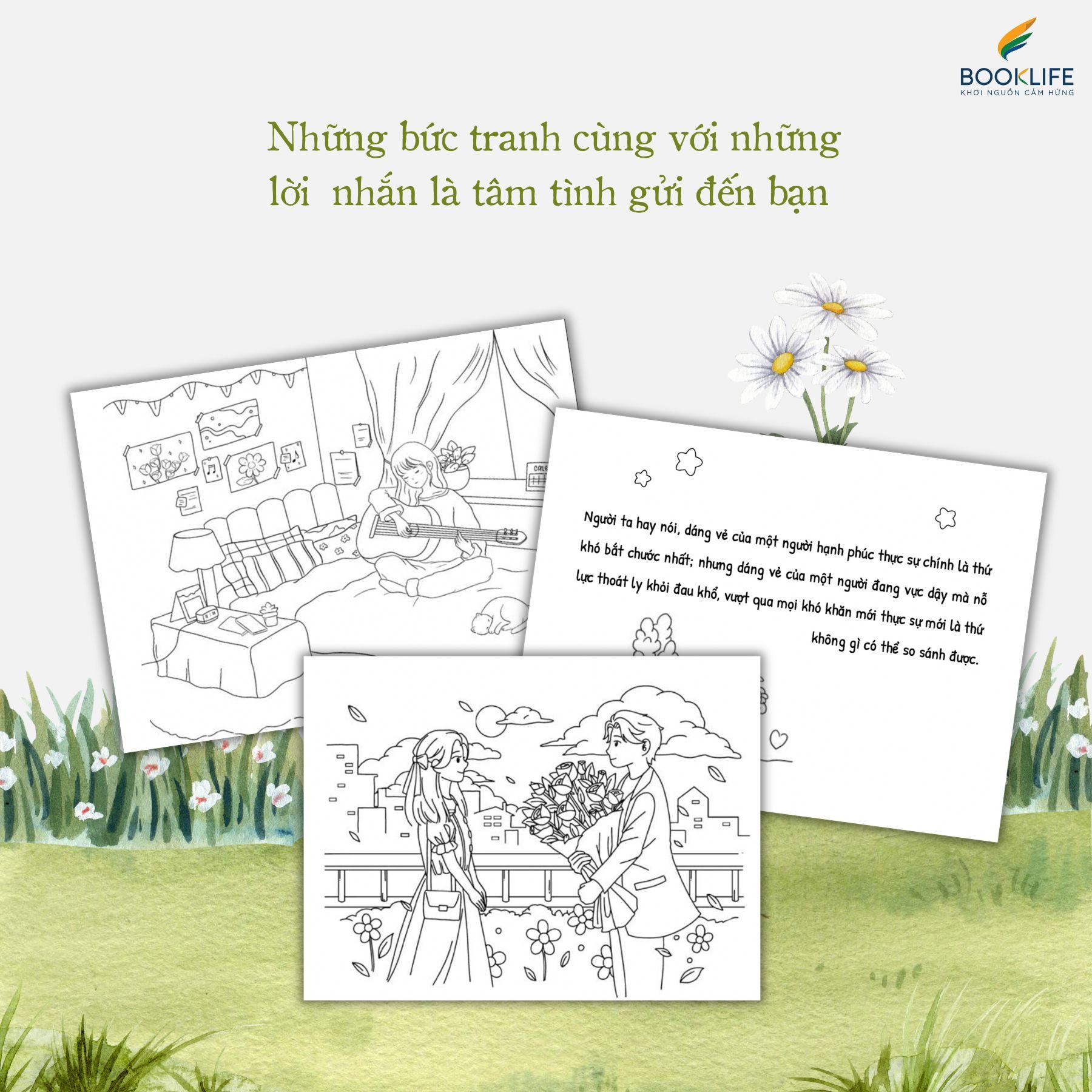 Sách tô màu này gồm 38 bức tranh với các chủ đề phong phú, từ nỗ lực, khí chất đến bình yên, hạnh phúc và tự do tận hưởng cuộc sống.