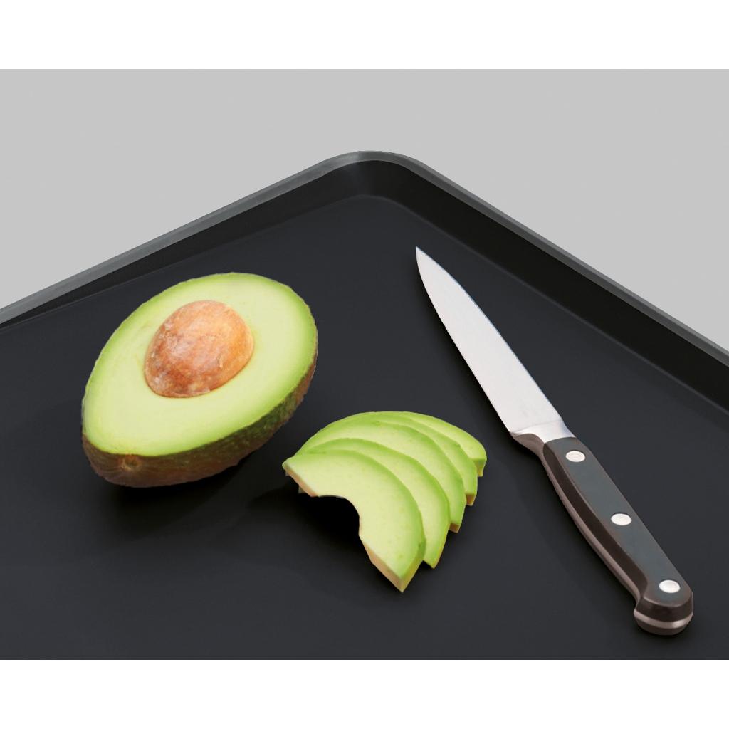 Cut&Carve Plus có nhiều công dụng trong một thiết kế đầy màu sắc. Một mặt có tay cầm thịt tích hợp để hỗ trợ thêm cho việc cắt thịt trong khi mặt còn lại cung cấp bề mặt cắt mịn cho tất cả các loại chế biến thực phẩm khác. Các chi tiết thông minh khác bao gồm đế góc cạnh, các cạnh nâng lên và các góc dễ rót để thu thập và loại bỏ vụn và chất lỏng. Nếu có món nướng Chủ Nhật trong thực đơn, bạn sẽ muốn Cut&Carve Plus trên mặt bếp.
