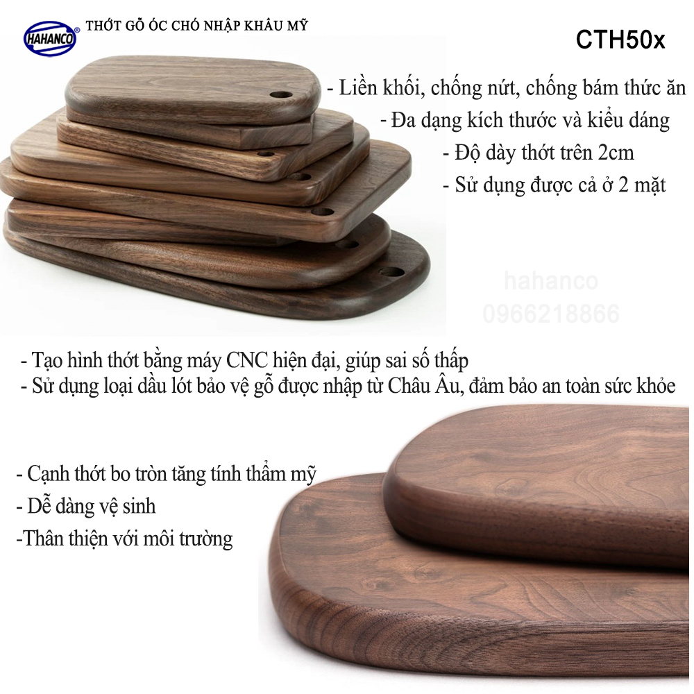 Loại thớt này được CTy HAHANCO sản xuất chủ yếu xuất khẩu sang Nhật và Châu Âu, các đường nét và chi tiết được làm chau chuốt rất đẹp. Sử dụng loại dầu lót bảo vệ gỗ được nhập từ Châu Âu, đảm bảo an toàn thực phẩm, đủ tiêu chuẩn xuất Châu Âu, Mỹ, Nhật. Nên có giá thành cao hơn các loại thớt dùng sơn lót giá rẻ.