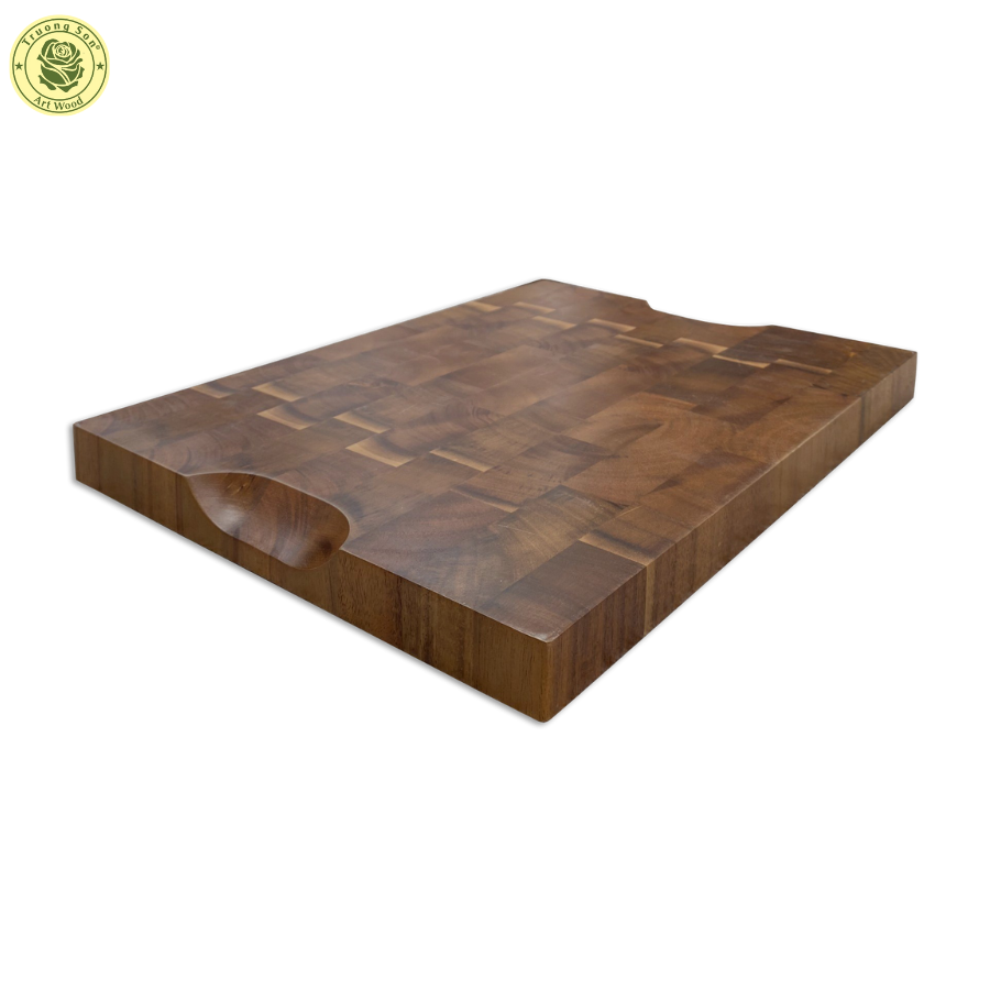 Thớt gỗ Teak Vibasic ghép dựng block kích thước 400x300x38mm, dùng để chặt I.Đặc điểm nổi bật - Được sản xuất tại nhà máy ra đời năm 1967- 56 năm kinh nghiệm - Đối tác