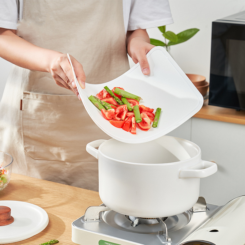- Thớt có thể uốn dẻo nên rất tiện lợi khi cho thức thực phẩm vào bát, nồi... khi thái xong.