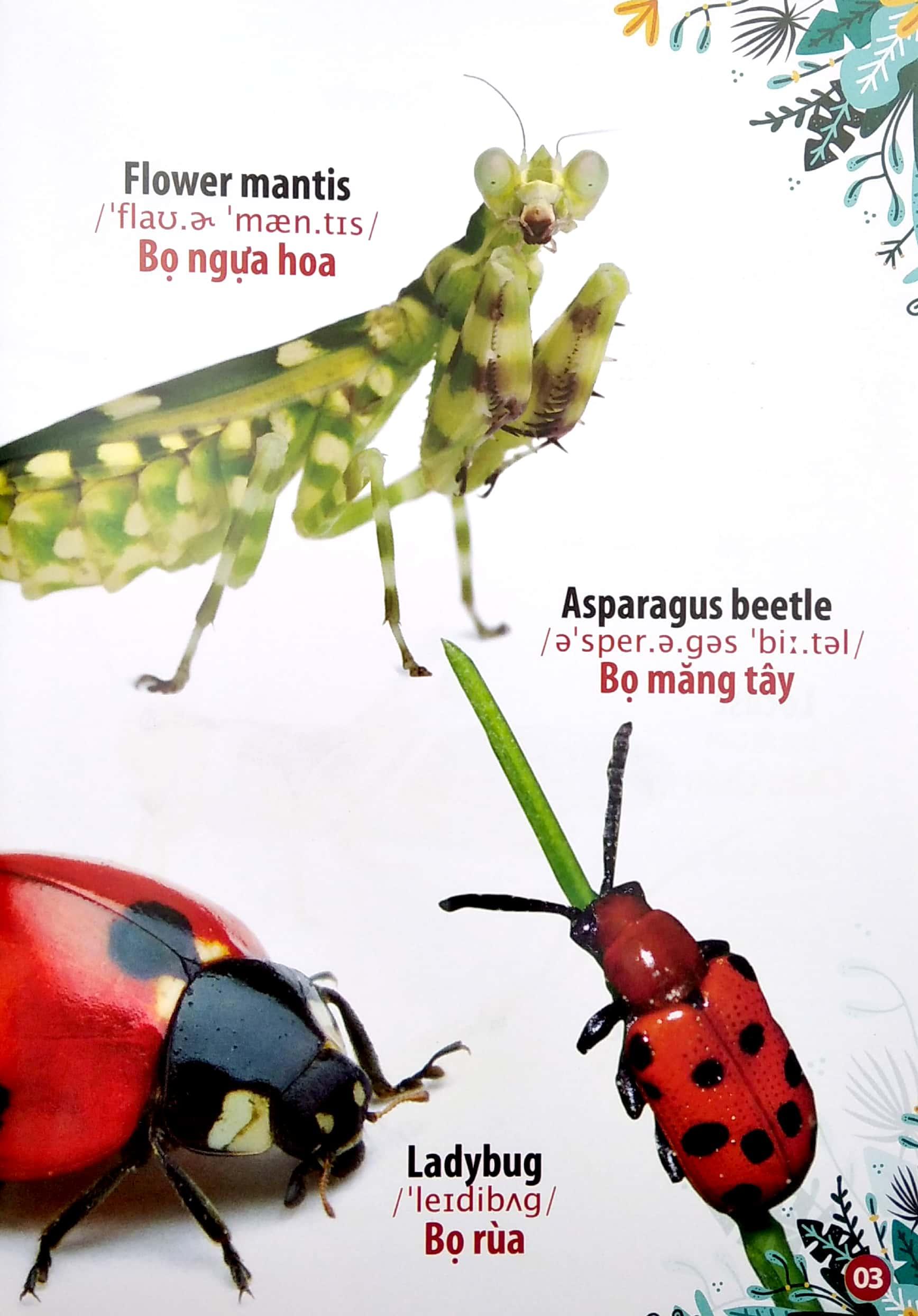 Những bức ảnh sặc sỡ cùng các khung hình sống động sẽ tái hiện lại cuộc sống Thế giới côn trùng và bò sát, đồng thời giúp bé phát triển kĩ năng quan sát, xây dựng vốn từ vựng tiêng Anh phong phú về Thế giới côn trùng và bò sát.