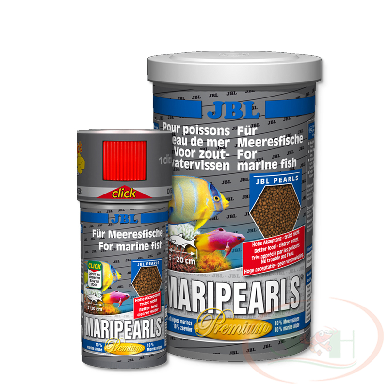 Thức ăn cá biển JBL MariPearls cung cấp đầy đủ các chất dinh dưỡng hoàn chỉnh, giúp các loài cá biển phát triển khỏe mạnh và tăng sức đề kháng bệnh. JBL MariPearls dạng hạt chìm và nổi, dễ tiêu hóa, thích hợp cho các loài cá biển có kích thước từ 5 ~ 20 cm ở tất cả các tầng nước.