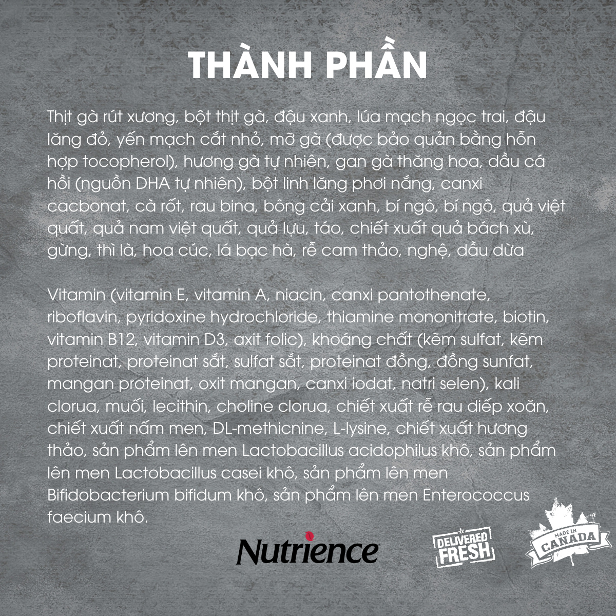 - Thức Ăn Cho Chó Con Khỏe Mạnh Nutrience Original - Thịt Gà, Rau Củ Và Trái Cây Tự Nhiên chất lượng cao là nguyên liệu chủ yếu trong công thức sản phẩm Nutrience Original
