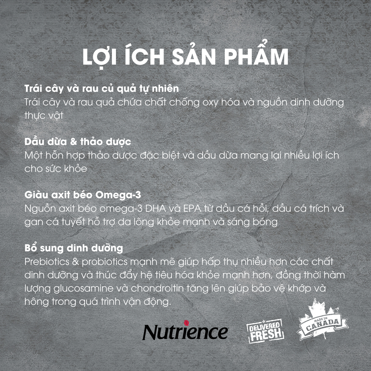 - Thức Ăn Cho Chó Con Khỏe Mạnh Nutrience Original - Thịt Gà, Rau Củ Và Trái Cây Tự Nhiên chất lượng cao là nguyên liệu chủ yếu trong công thức sản phẩm Nutrience Original