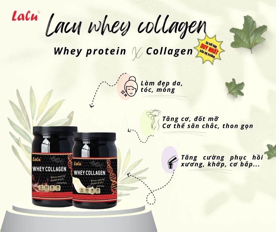 Lacu Whey Collagen – Sự kết hợp hoàn hảo giữa sức mạnh và vẻ đẹp Lacu Whey Collagen là sản phẩm dinh dưỡng cao cấp, được thiết kế đặc biệt để không chỉ hỗ trợ