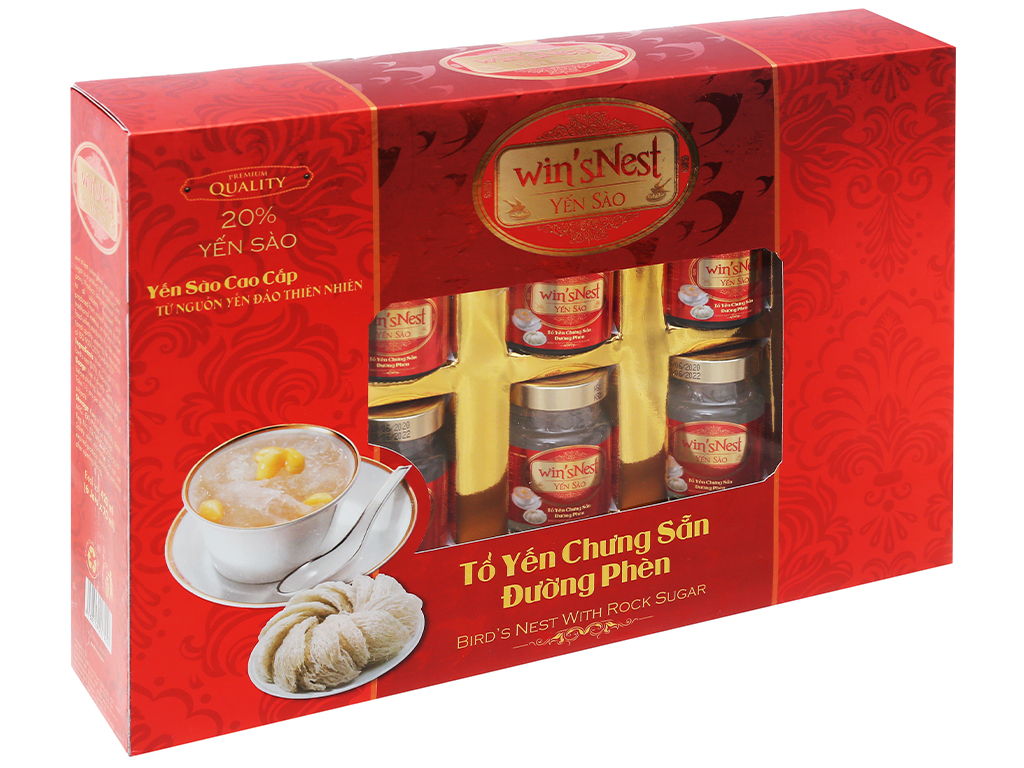 Yến sào cao cấp win'sNest tổ yến chưng sẵn 20% đường phèn được sản xuất từ nguồn yến đảo thiên nhiên, là một sản phẩm của công ty wincofood. Được sản xuất bằng phương pháp cổ truyền trên dây chuyền đạt tiểu chuẩn an toàn thực phẩm.