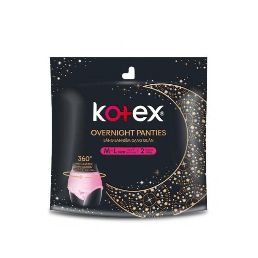 Băng ban đêm dạng quần đột phá MỚI với thiết kế vừa vặn và chống tràn 360 độ cho bạn cảm giác an toàn và thoải mái suốt đêm. THÔNG TIN SẢN PHẨM Kotex Băng