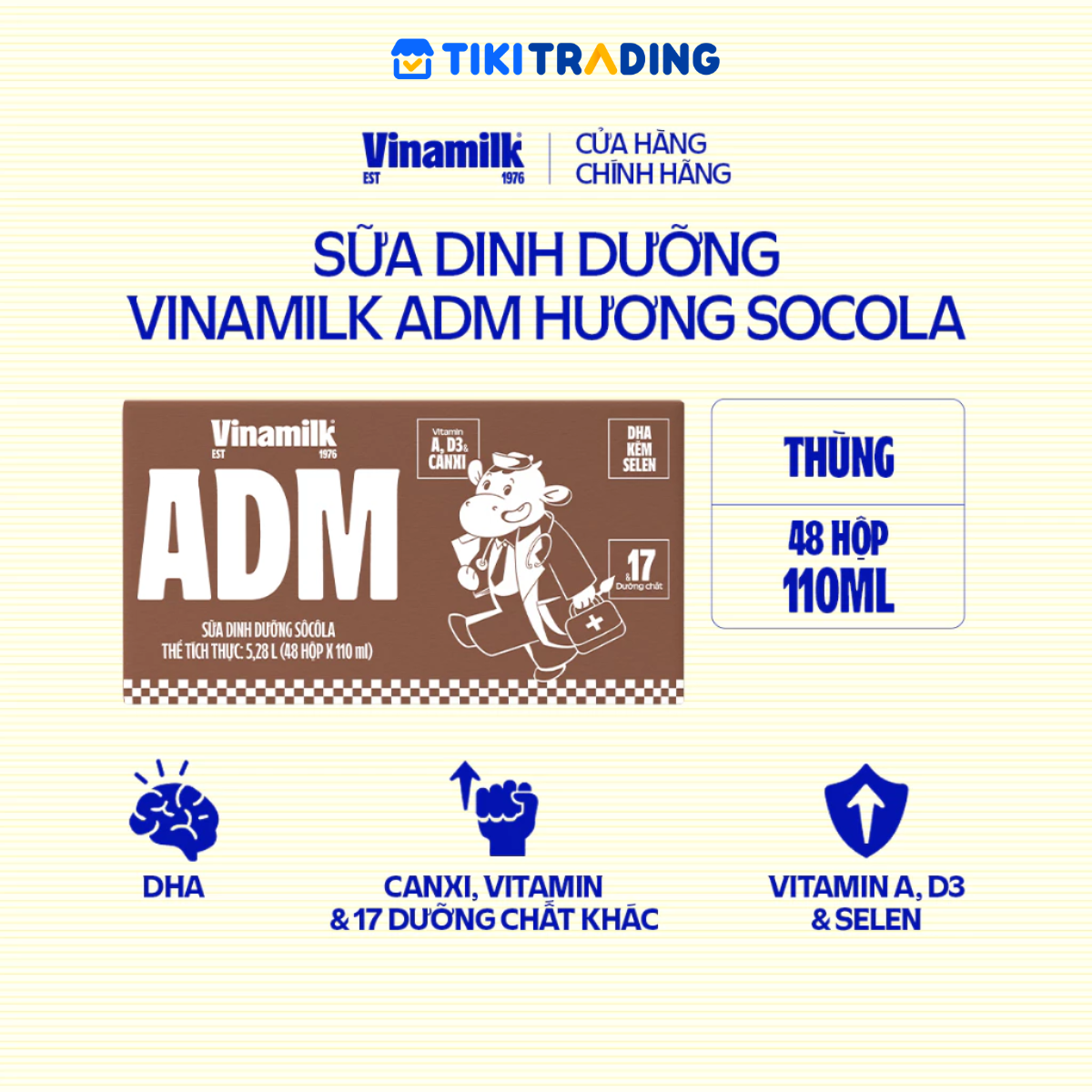 Mua tại TiktokQuy cách thùng: 12 lốc/thùng Sữa Vinamilk ADM mới với dòng sữa thơm ngon mát lành, bổ sung dưỡng chất giúp trẻ "KHỎE ĐỀ KHÁNG - SÁNG TƯ DUY Bổ sung: