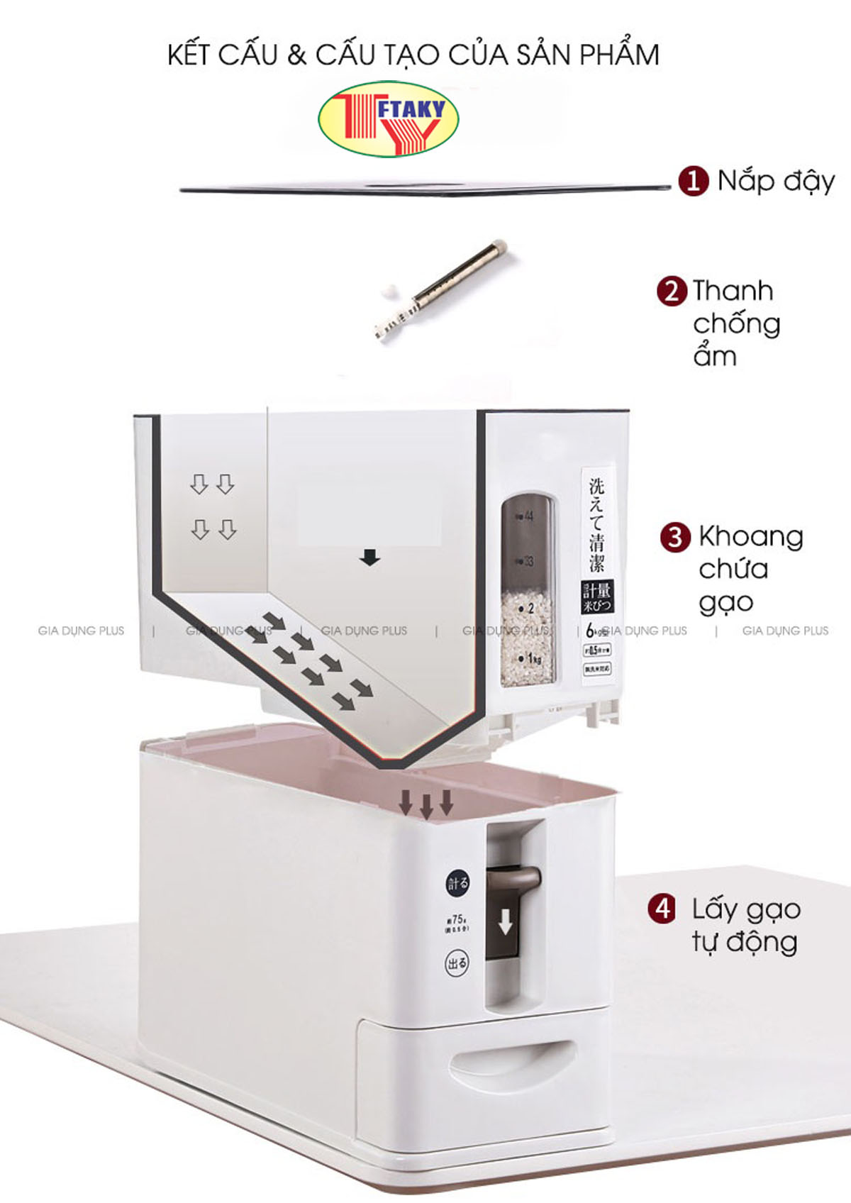 - Lấy gạo tự động và thông minh, giúp bảo vệ gạo khỏi ẩm mốc và côn trùng. Sản phẩm này là tài sản cá nhân được bán bởi Nhà Bán Hàng Cá Nhân và không thuộc đối tượng phải chịu thuế GTGT. Do đó hoá đơn VAT không được cung cấp trong trường hợp này.