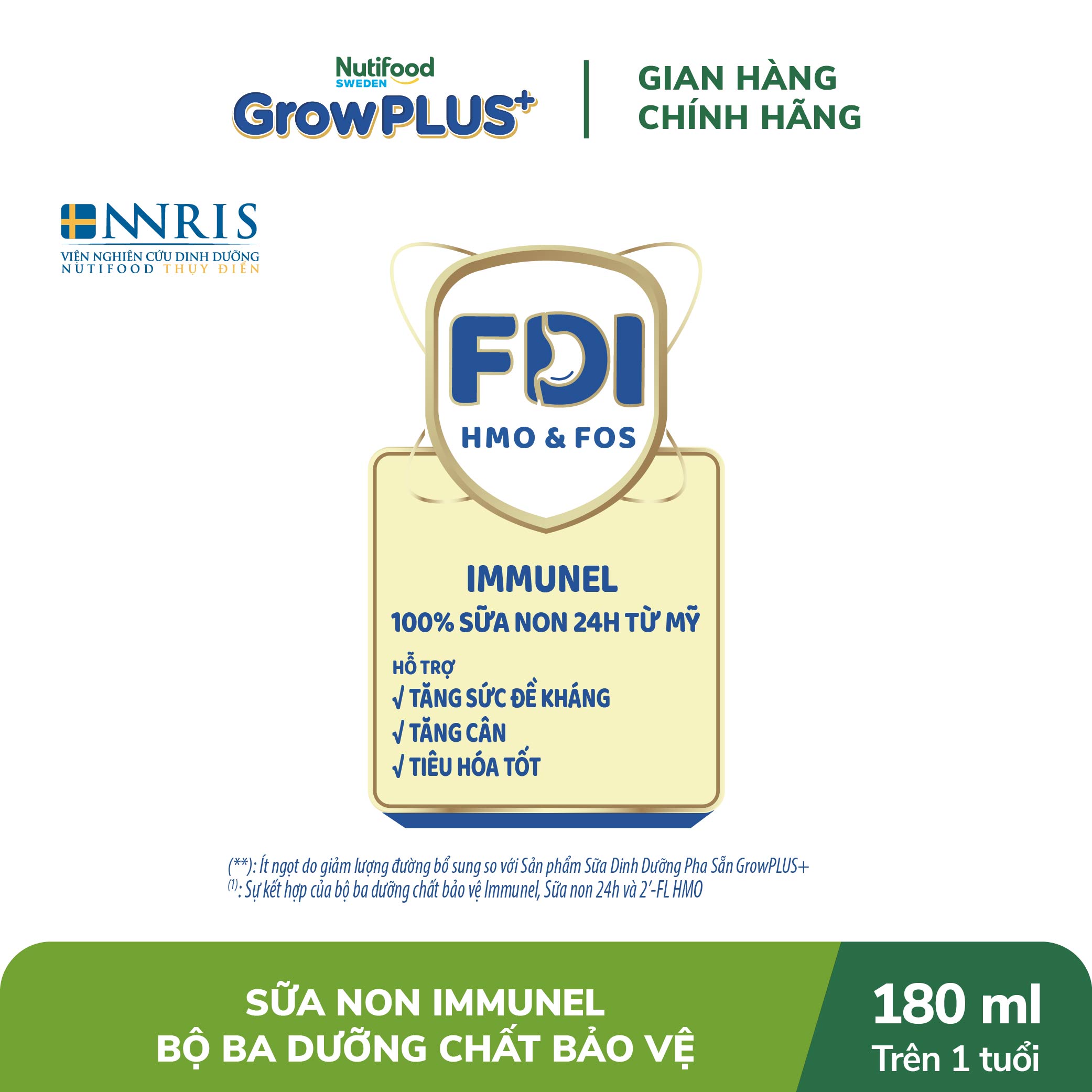 ✨Thùng Sữa Bột Pha sẵn Nutifood GrowPLUS+ Sữa Non Immunel trên 1 tuổi (24 hộp x 180ml)