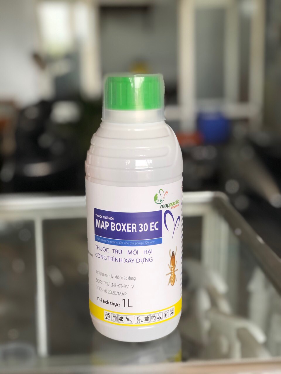Mua tại TiktokThuốc trừ mối Map Boxer là sản phẩm của tập đoàn Map Paciffic Singapore. Map boxer hoạt chất chính là Permethrin thuộc nhóm cúc tổng hợp. Nên rất an toàn đối với người và vật nuôi. Đây là hóa chất phòng trừ mối hữu hiệu cho các công trình xây dựng. Số đăng ký: 975/CNĐKT-BVTV -Thành phần: Hoạt chất: Permethrin ………… 30% và Chất phụ gia: …………% w/W