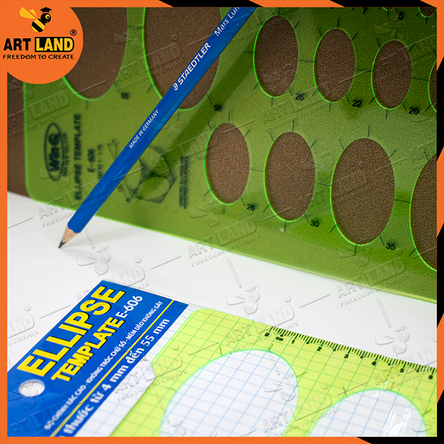 Thước vẽ Ellipse Template - WinQ E606 Thước Elip làm bằng nhựa dẻo chất lượng cao, độ đàn hồi cao, Thước Elip có vạch kẻ chia độ và chia kích thước chính xác. Thước Elip