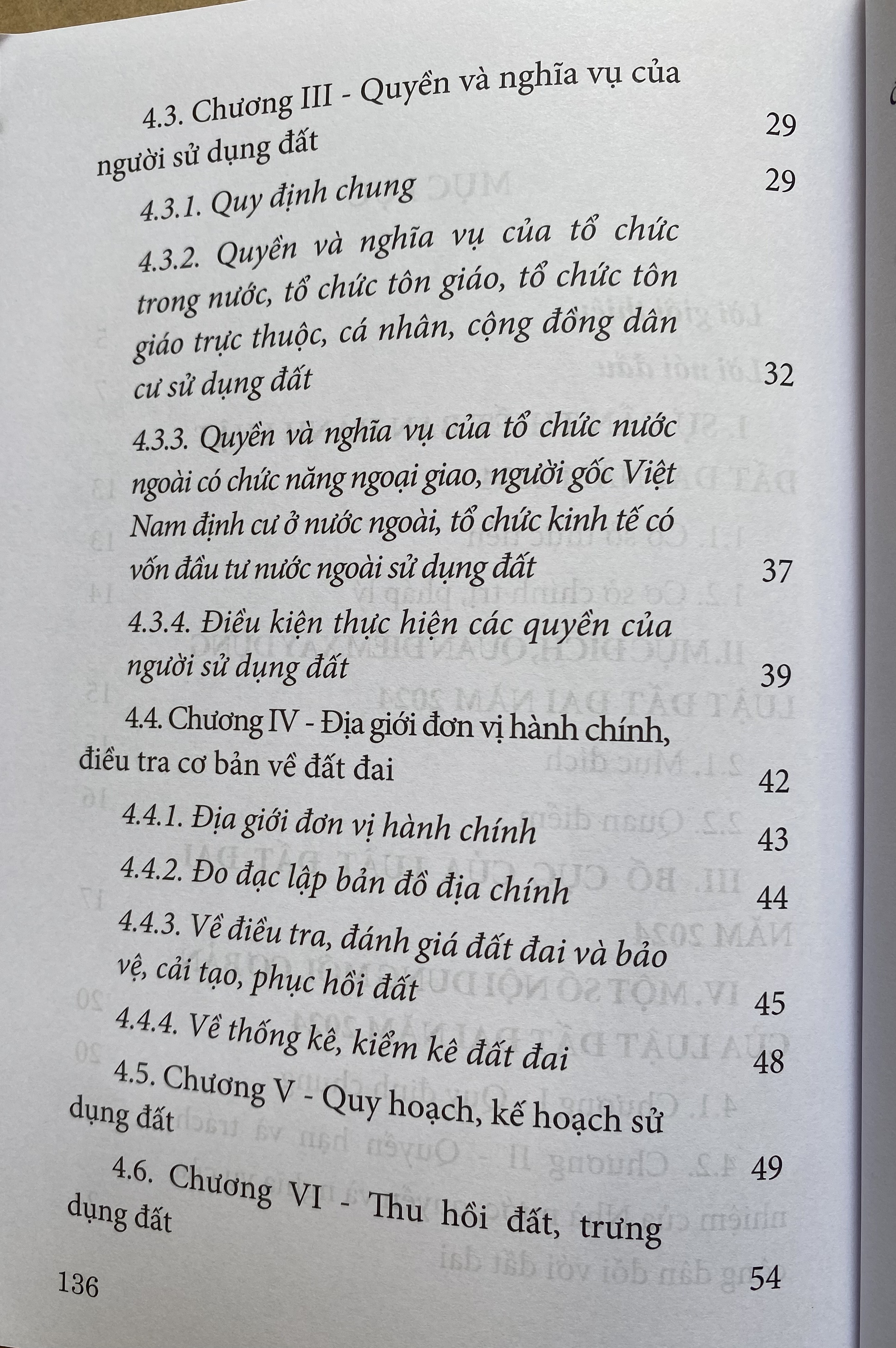 Luật Đất đai số 31/2024/QH15 được Quốc hội khóa XV thông qua ngày 18/01/2024. Luật Đất đai năm 2024 gồm 16 chương, 260 điều, trong đó sửa đổi, bổ sung 180 điều của Luật