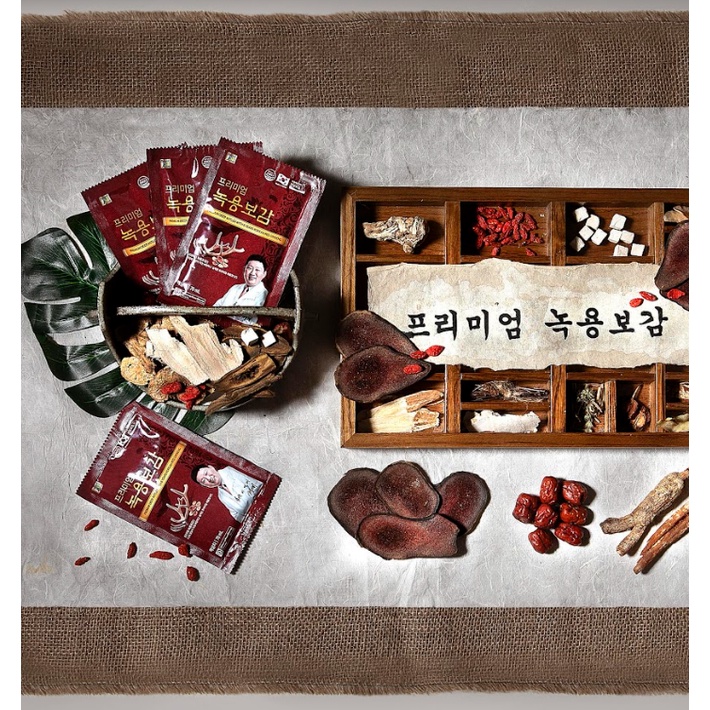 Premium Deer Antler With 6 Years Korean Red Ginseng Chiết Xuất Nhung Hươu Và Hồng Sâm Hàn Quốc 6 Năm Tuổi Quy cách: 1 HỘP 30 gói ( gồm 3 hộp lớn, mỗi hộp chứa
