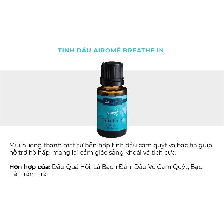 Mua tại TiktokCHI TIẾT MÙI HƯƠNG Breathe In Mùi hương thanh mát từ hỗn hợp tinh dầu cam quýt và bạc hà giúp hỗ trợ hô hấp, mang lại cảm giác sảng khoái và tích cực. Hỗn hợp của:dầu quả hồi, lá bạch đàn, dầu vỏ cam quýt, bạc hà, tràm trà THÔNG TIN SẢN PHẨM Mỗi mùi hương đều được kiểm tra chất lượng kỹ càng trong phòng thí nghiệm để tối đa hóa lợi ích. Chỉ cần 3 - 5 giọt tinh dầu Airome cho 100ml nước khi sử dụng đèn khuếch tán tinh dầu hoặc pha Airome với các loại dầu nền để sử dụng thoa ngoài da. Airomé giúp dễ dàng trải nghiệm liệu dễ dàng trải nghiệm liệu pháp hương thơm giống như tại spa ngay tại nhà. HƯỚNG DẪN SỬ DỤNG