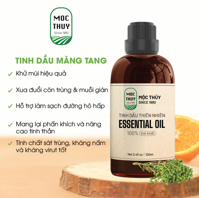 ✨Tinh Dầu Màng Tang Nguyên Chất Hữu Cơ MỘC THỦY 100ML - Maychang Essential Oil - Khử Mùi Xông Thơm Phòng, Thư Giãn - Đạt chuẩn chất lượng kiểm định