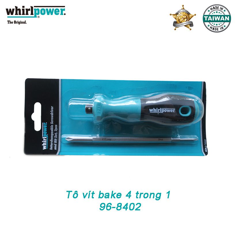 • Thông thường mỗi chiếc tô vít sẽ có một đầu vặn với hình dáng phù hợp, để thực hiện được nhiều công việc bạn sẽ phải sắm cho mình nhiều chiếc tô vít với nhiều đầu vặn khác nhau. Điều này vừa tốn kém lại vừa khiến túi đồ nghề của bạn thêm cồng kềnh. Tô vít bake 4 trong 1 Whirlpower với 4 mũi bake có kích thước là: Ph0, Ph1,2,3 trong 1 cây tô vít.