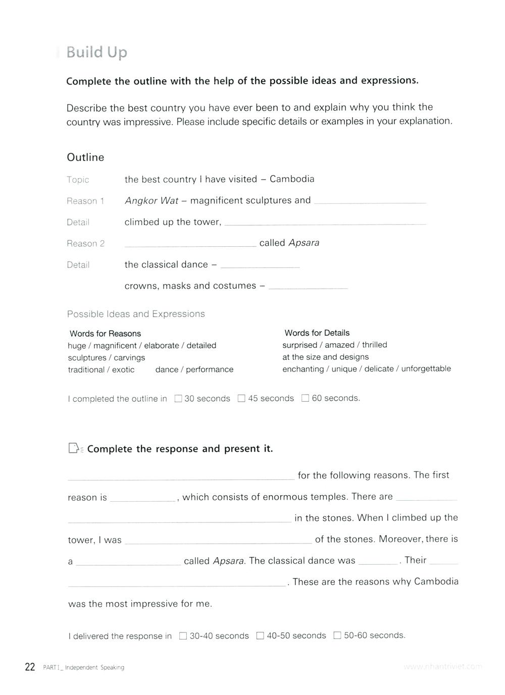 Building Skills For The Toeft IBT Beginning - Speaking Trong cuốn sách Building Skills For The Toeft IBT Beginning - Speaking: người học có thể tiếp xúc với các dạng câu hỏi sáng tạo tìm