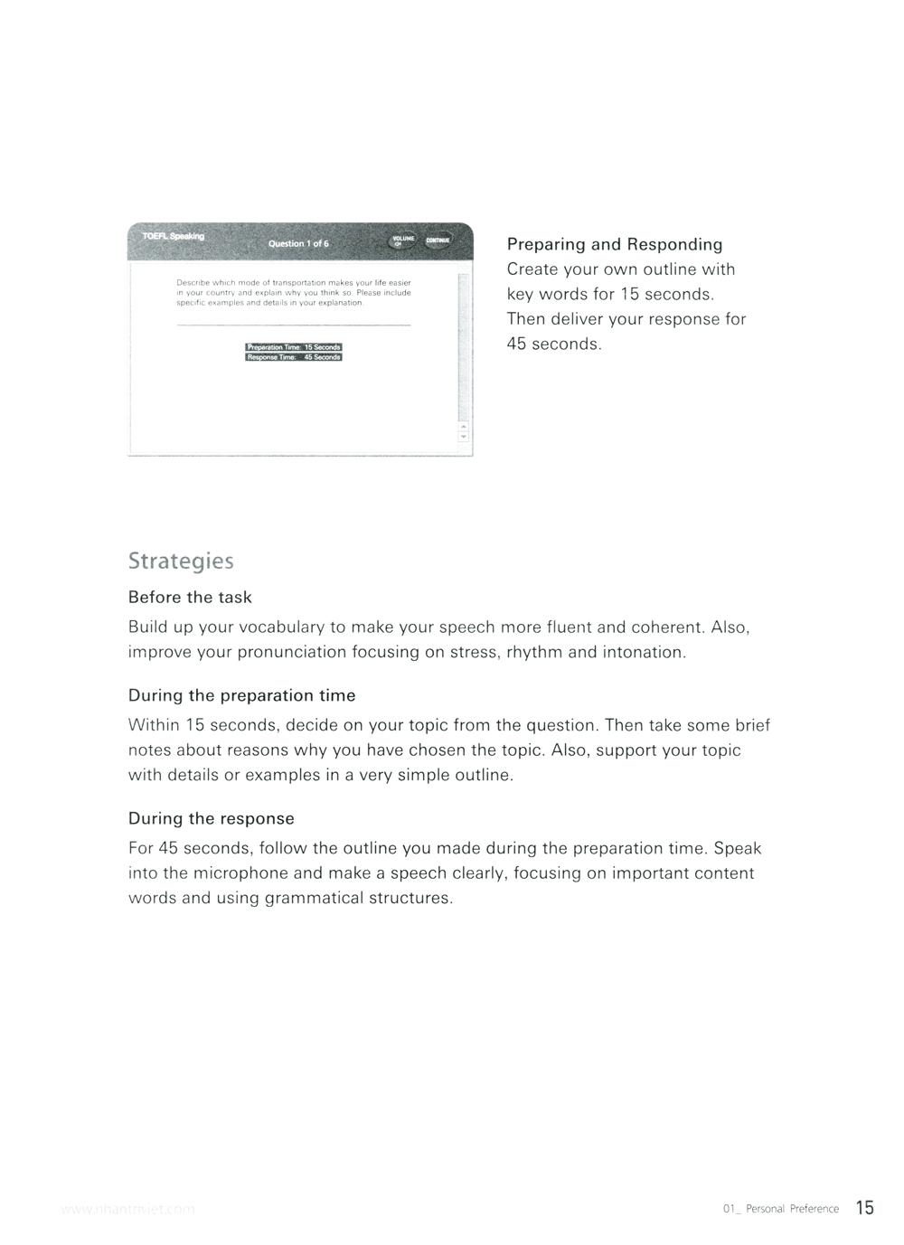 • Step-by-step exercises which familiarize students with the Toefl iBT test format.