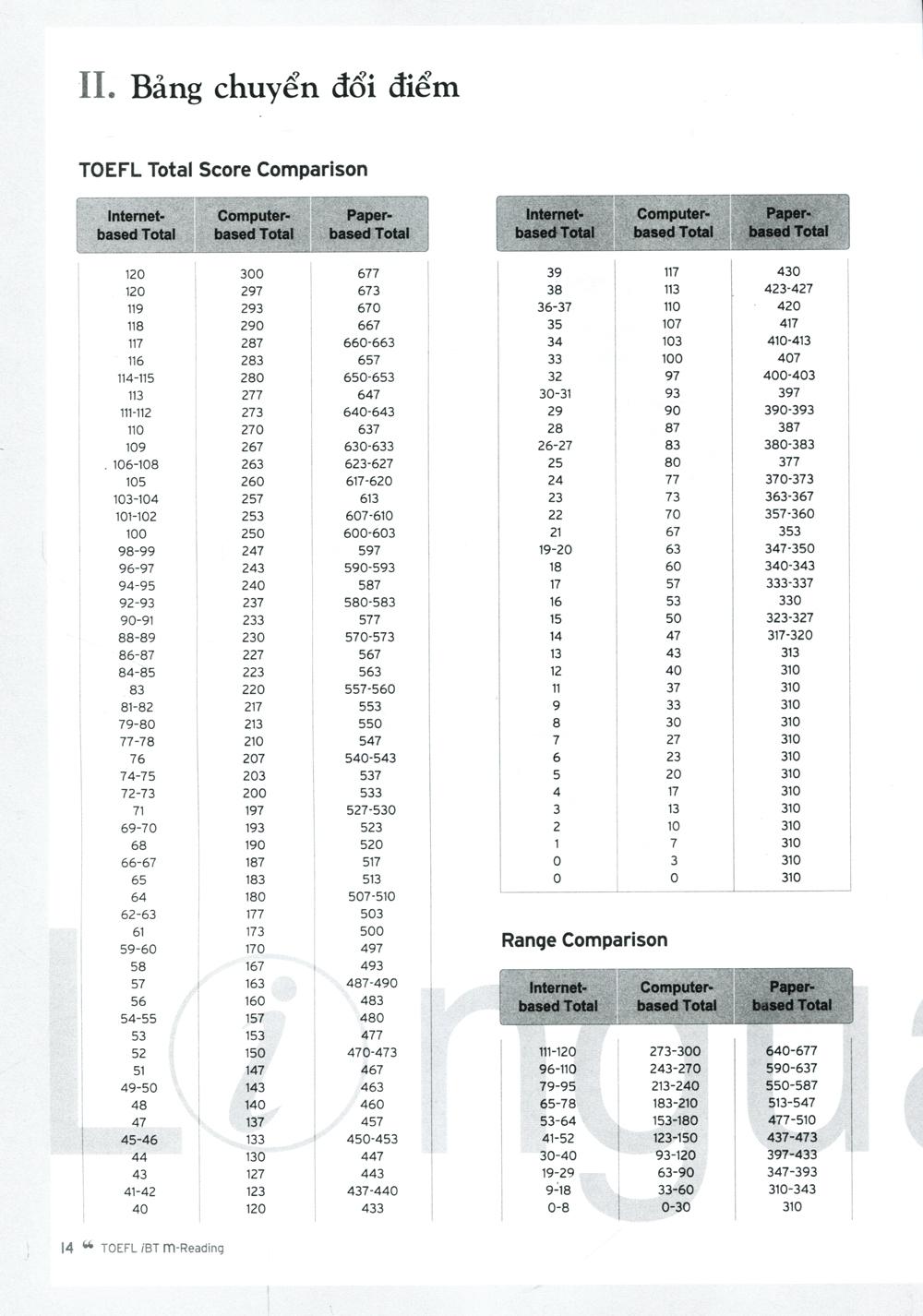iBT Practice: Các bài đọc có dạng thức giống bài thi TOEFL iBT thực tế giúp học viên thực hành trả lời dạng câu hỏi được trình bày trong các chương và cũng nhằm kiểm tra lại khả năng đọc hiểu của mình.