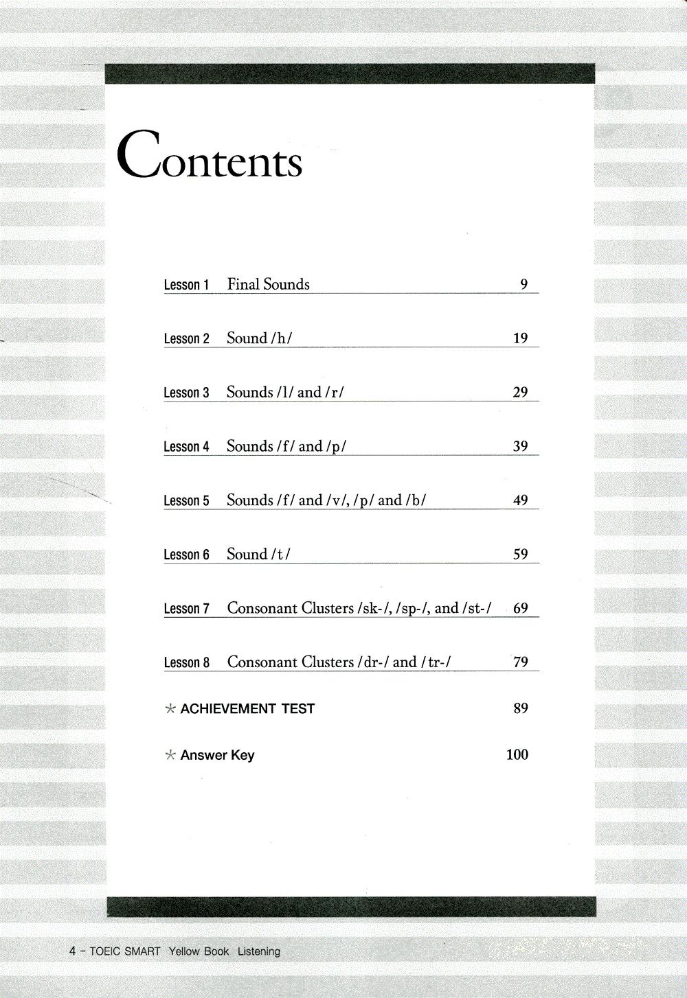 This book has eight lesson. It is designed to enhence the listening ability of beginning learners of English. It also familiarizes them with the three parts of the TOEIC Bridge Listening test.