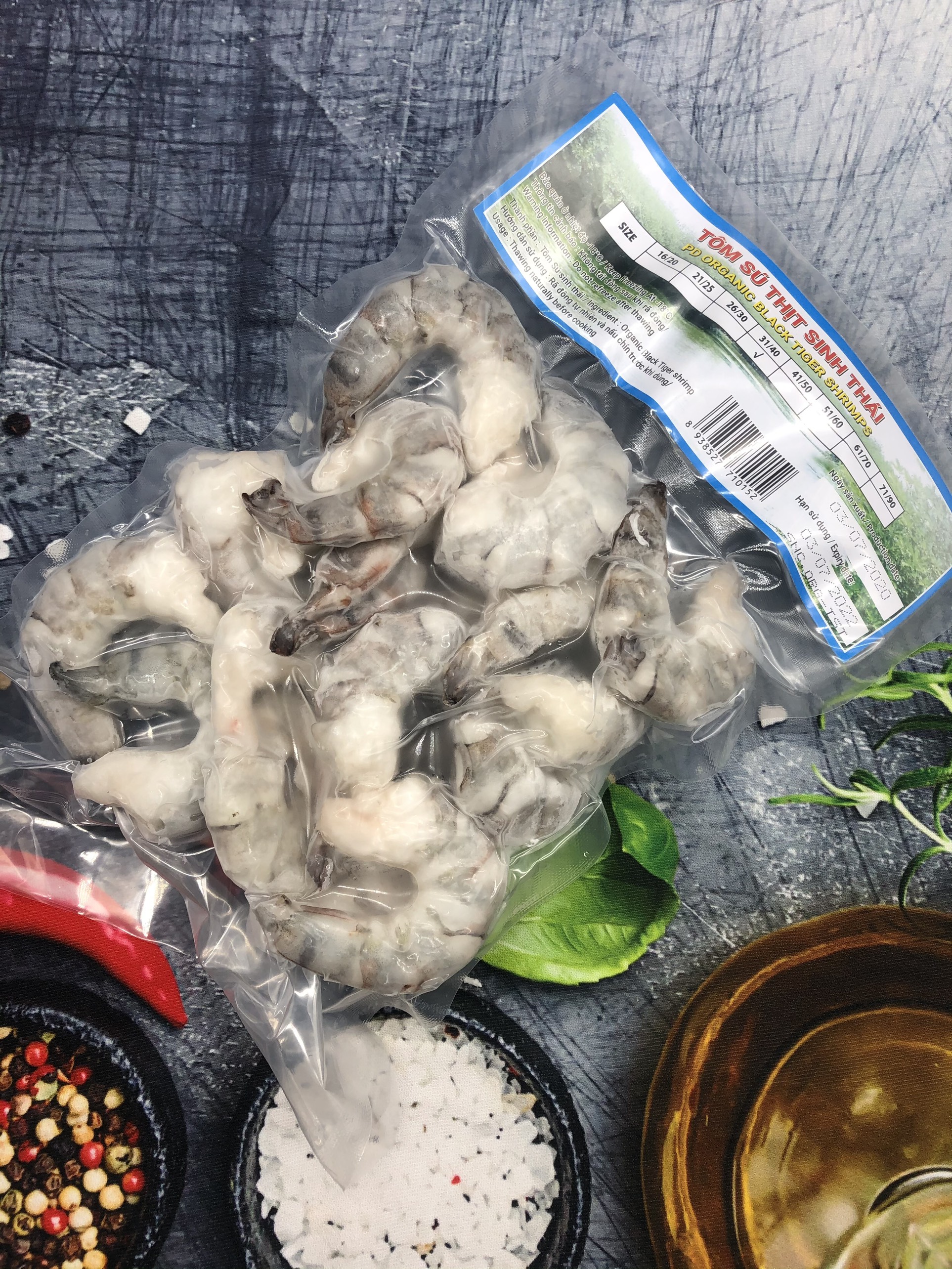 ***Tôm sú thịt sinh thái đông lạnh được đóng túi, cấp đông lúc tươi, tôm khi rã đông đảm bảo vẫn giữ được độ ngon và vị ngọt của tôm.