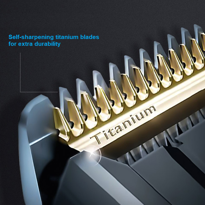 - Lưỡi titan tự mài để tăng độ bền 120 phút sử dụng không dây sau 1h sạc