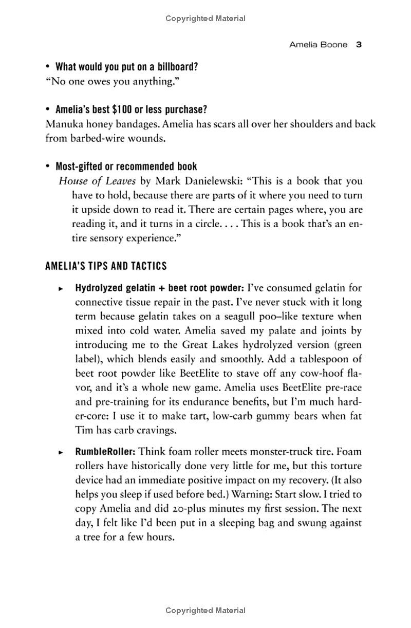 “What makes the show different is a relentless focus on actionable details. This is reflected in the questions. For example: What do these people do in the first sixty minutes of each morning? What do their workout routines look like, and why? What books have they gifted most to other people? What are the biggest wastes of time for novices in their field? What supplements do they take on a daily basis?
