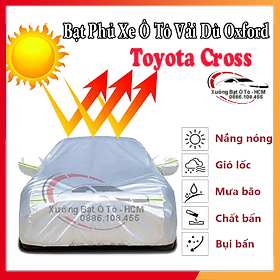 ✨[TOYOTA CROSS] Bạt Phủ Ô Tô Vải Dù Oxford, Tráng Nhôm Cao Cấp, Áo Trùm Bảo Vệ Xe TOYOTA CROSS, Bạc Phủ Trùm Chống Nóng Chống Mưa, Chống Xước Xe, Bạt Của Xưởng Được May Theo Kích Cỡ Xe, Cam Kết Vừa Xe, Bền Và Đẹp Tới 2 Năm
