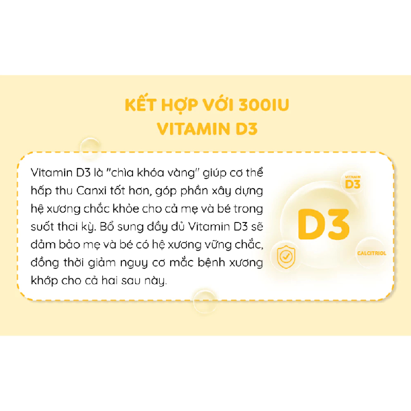 Vitamin D3 hỗ trợ hấp thụ canxi từ ruột.