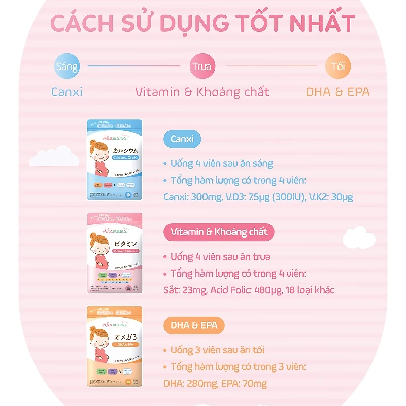 Bổ sung canxi, magie, Vitamin D3, K2 cho mẹ và bé.