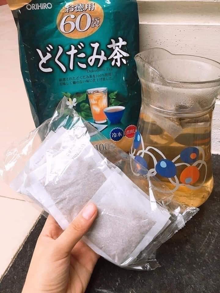 Trà Diếp Cá Hỗ Trợ Thanh Nhiệt, Thải Độc Dokudami Tea Orihiro 60 Túi Lọc Nhật Bản, Giúp Thanh Lọc Cơ Thể THÔNG TIN SẢN PHẨM: - Hãng sản xuất: Orihiro - Xuất xứ: Nhật Bản - Quy cách: Dạng túi trà lọc, 60 túi nhỏ/gói - Hạn sử dụng: 36 tháng kể từ ngày sản xuất CÔNG DỤNG: - Giúp cơ thể nhuận tràng, giảm tình trạng táo bón - Hạ sốt, giảm đau hiệu quả - Tăng cường hệ miễn dịch tự nhiên, giúp cơ thể luôn khỏe. - Hỗ trợ tình trạng sỏi thận, tiểu đường. - Hỗ trợ tình trạng viêm phế quản, viêm phổi. Hạn chế hiệu quả những cơn ho khan, ho đờm do viêm phế quản, viêm phổi gây nên. - Làm đẹp da cho, giúp cải thiện làn da khô ráp và sạm nám da. ĐỐI TƯỢNG SỬ DỤNG: - Trà thải độc diếp cá Orihiro phù hợp với mọi đối tượng, trẻ em từ 2 tuổi có thể uống hàng ngày, tuy nhiên, những đối tượng đặc biệt sau đây cần sử dụng thường xuyên: - Bị nóng trong người, thường xuyên nổi mụn nhọt, mề đay - Những người bị trĩ, hoặc táo bón. - Phụ nữ kinh nguyệt không đều, rối loạn nội tiết - Người bị sỏi thận THÀNH PHẦN: 100% lá diếp cá nguyên chất