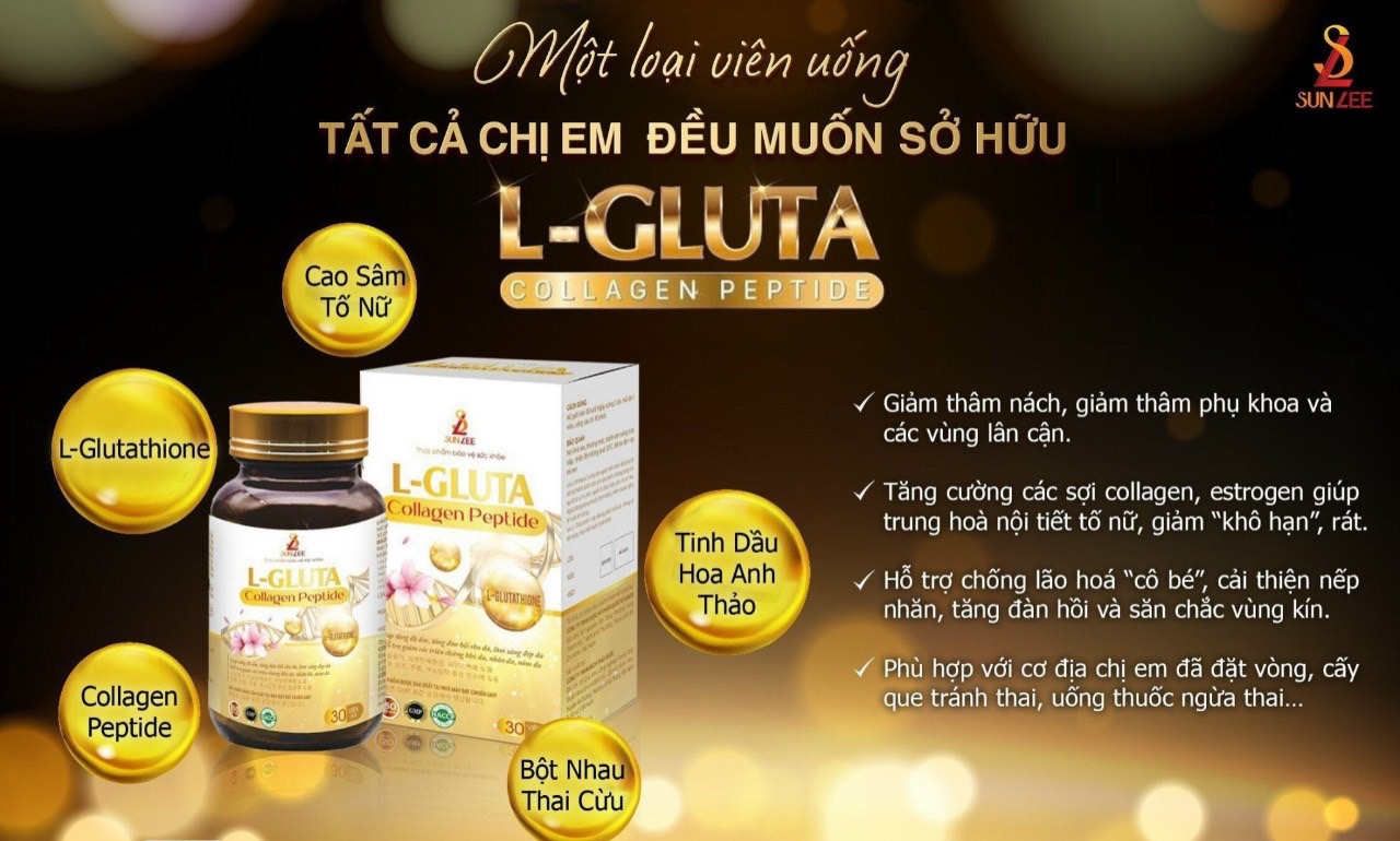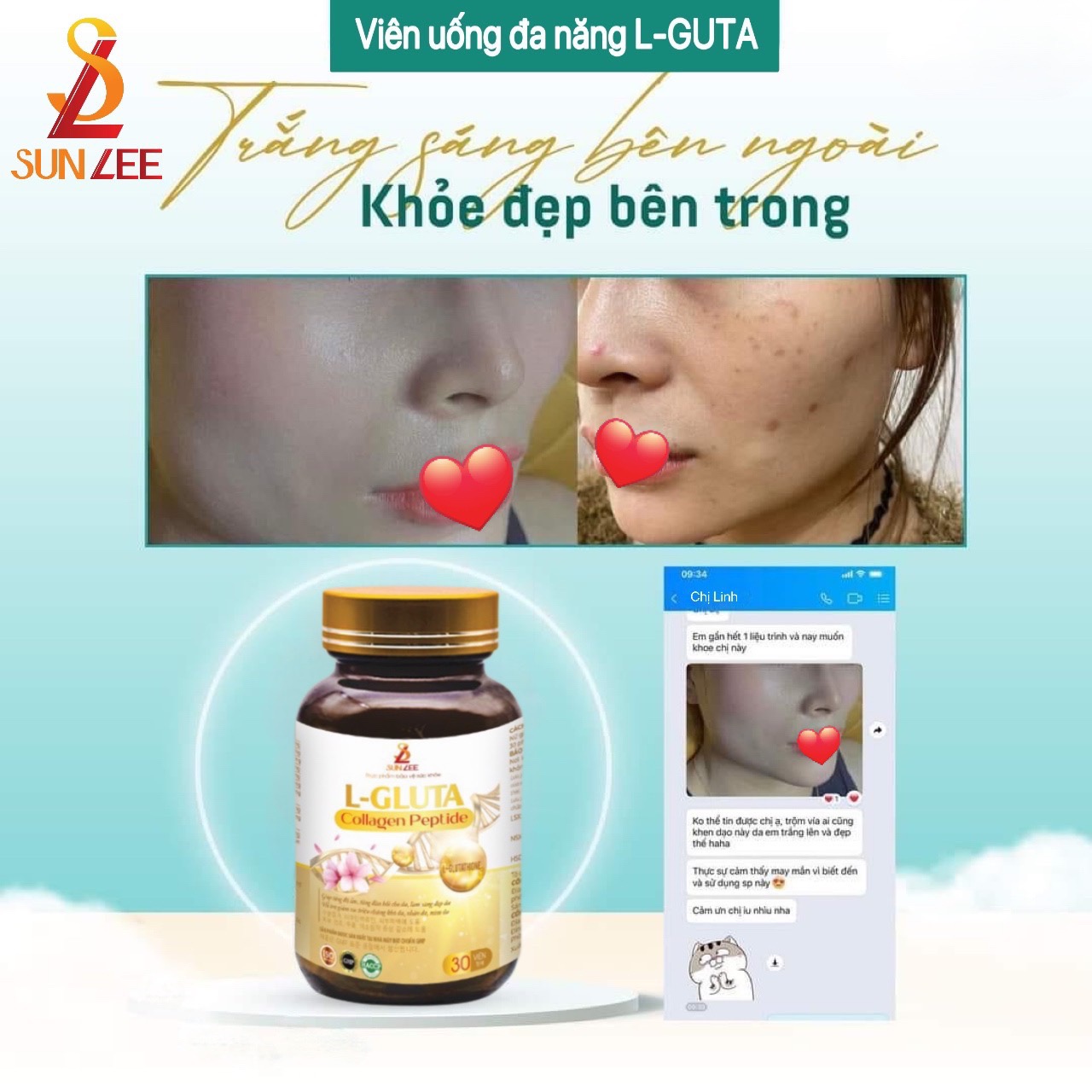 Viên uống đa năng L-Guta collagen peptide - 1lọ/30 viênTHÀNH PHẦN NỔI BẬT:- L-GLUTATHIONE, COLLAGEN, L-CYSTINE, CAO SÂM TỐ NỮ, BỘT SỮA ONG CHÚA , BỘT TINHDẦU HOA  ANH THẢO, BỘT NHAUTHAICỪU, HA, VITA...