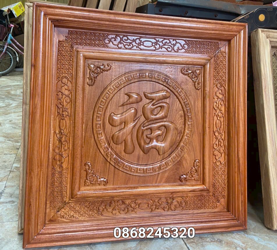 _ Tranh chữ phúc được làm bằng chất liệu gỗ gõ tự nhiên 100% _ Kt mặt vuông 61×61×4cm _ Tranh được khắc nổi tỉ mỉ ,tinh xảo kỳ công .Từ những người thợ giàu