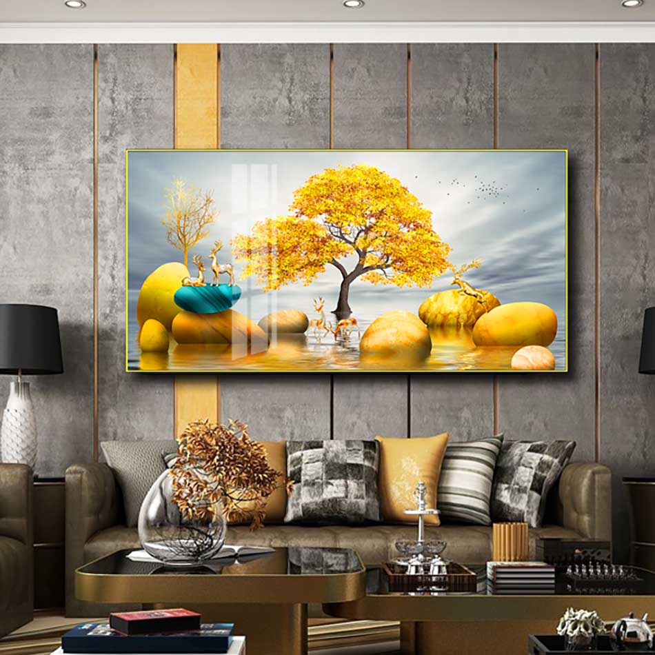 Tranh treo tường cao cấp - bộ tranh hươu vàng