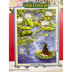 Tên tranh: Tranh thêu kín Cô gái ao sen DX1069